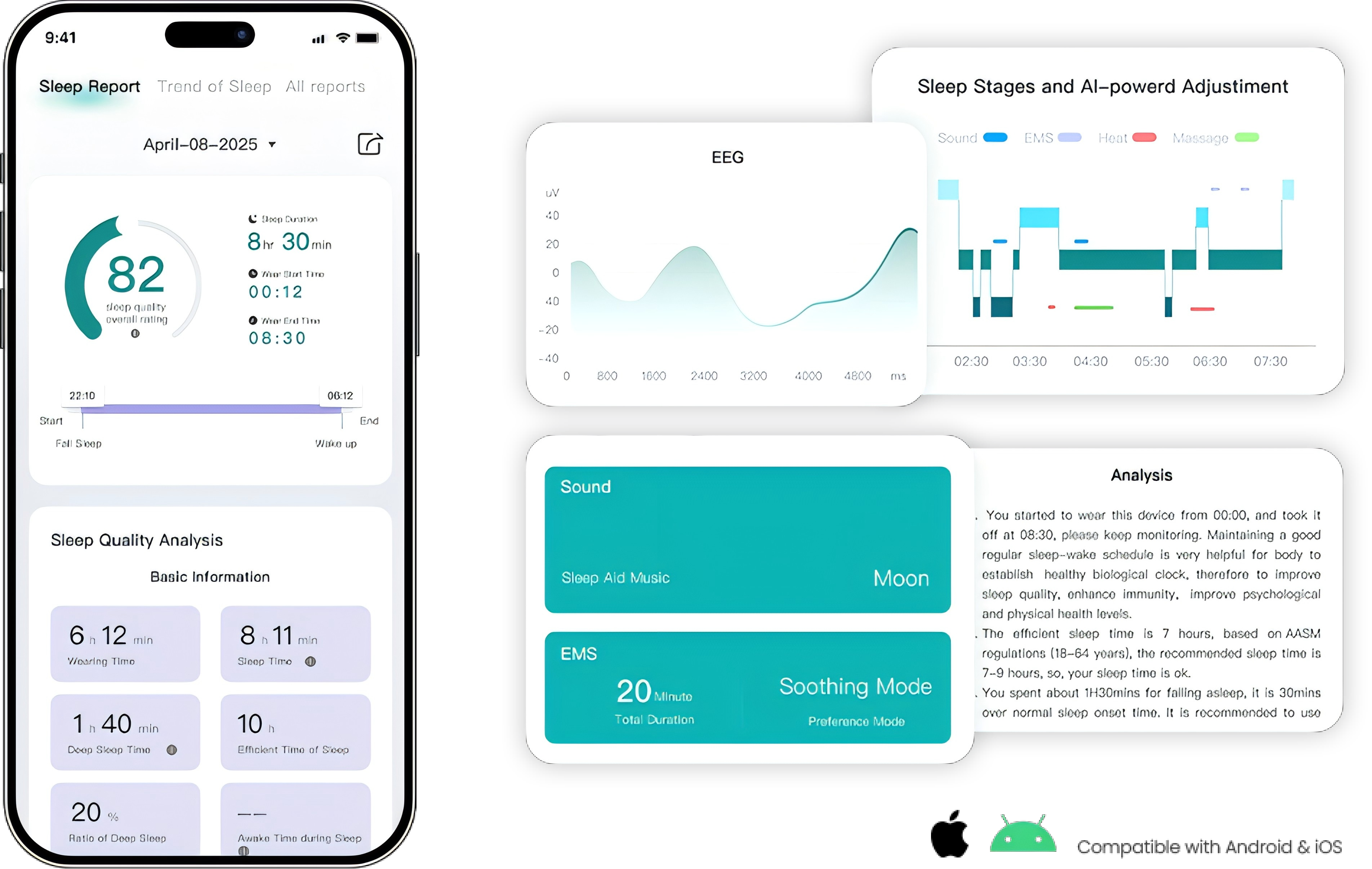Visualized data, multi-dimensional analysis and in-depth sleep suggestions. Run on iOS & Android.